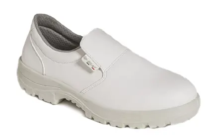 Gamme de chaussure de sécurité projetée pour l’usage dans le secteur agroalimentaire, restauration et hygiène, réalisée avec des matières premières hydrofuges, lavables et respirant de bonne qualité.